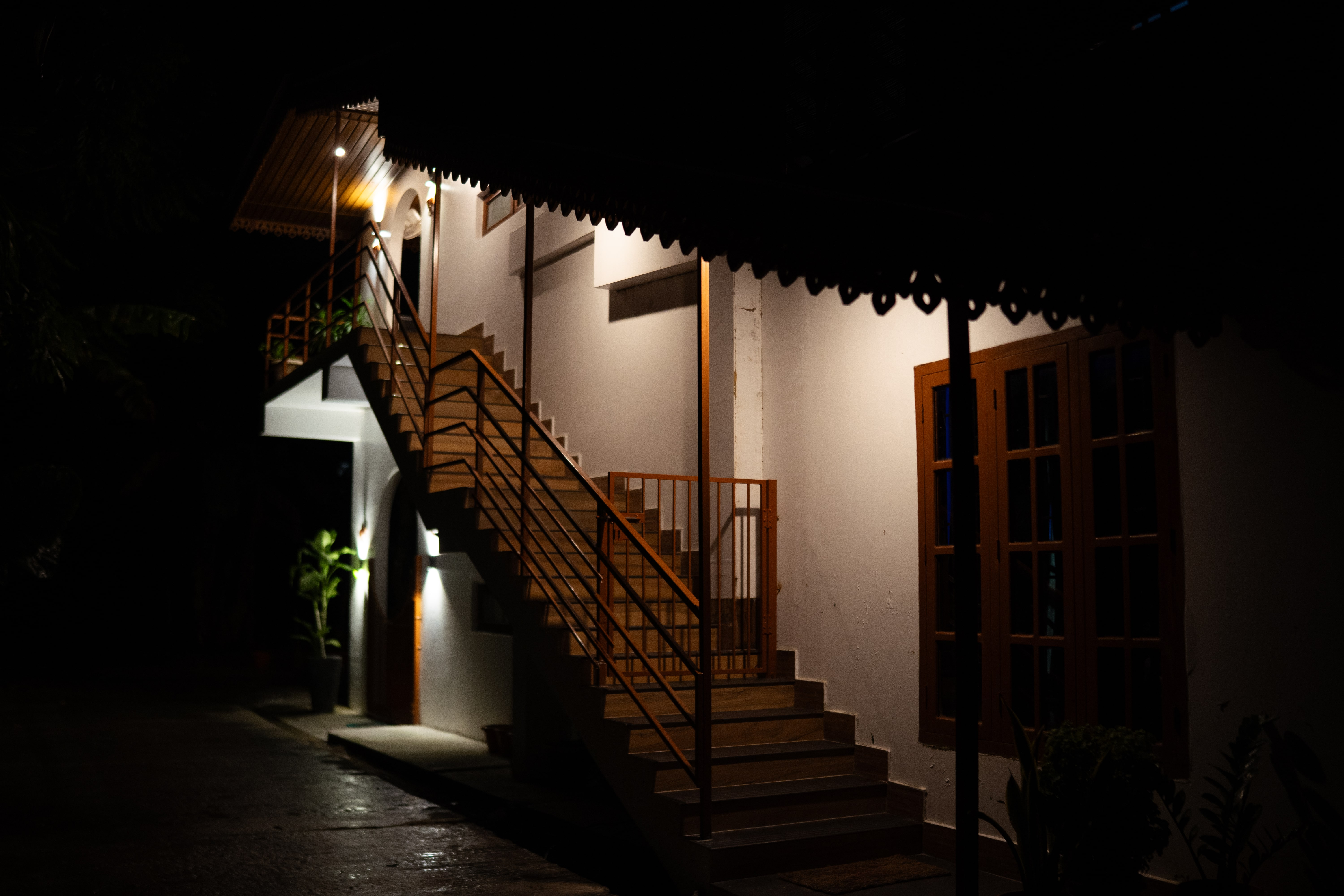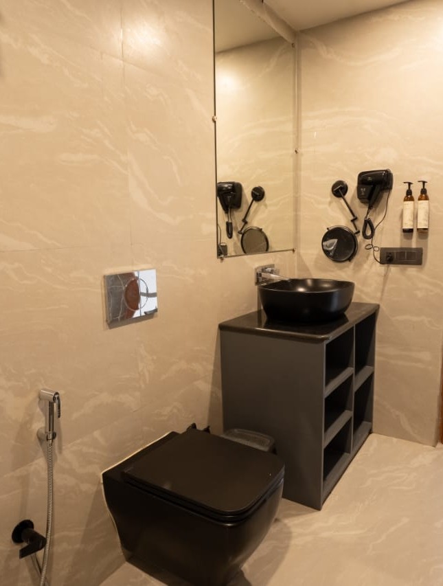 Each room is private, with its own entrance and attached bathroom. Some rooms include a personal kitchen for guests who enjoy cooking. Every room is air-conditioned and equipped with a geyser, fresh towels, toiletries, and regularly changed bedding. Extra mattresses are available on request.
